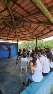 Além da vivência ambiental, os passeios pedagógicos também abrem espaço para o contato direto com a cultura local. A interação com comunidades, histórias da região e conversas com moradores e lideranças enriquecem ainda mais a experiência dos alunos.